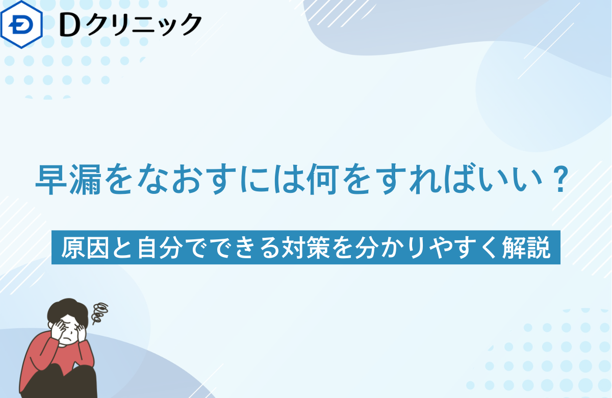 基本的には泌尿器科が窓口となります。「デリケートな悩みを話しやすい環境で相談したい」という場合は、男性専門クリニックという方法もあります。Dクリニックでは受診前に男性看護師への無料電話相談が可能で、デリケートな悩みも安心して相談できます。