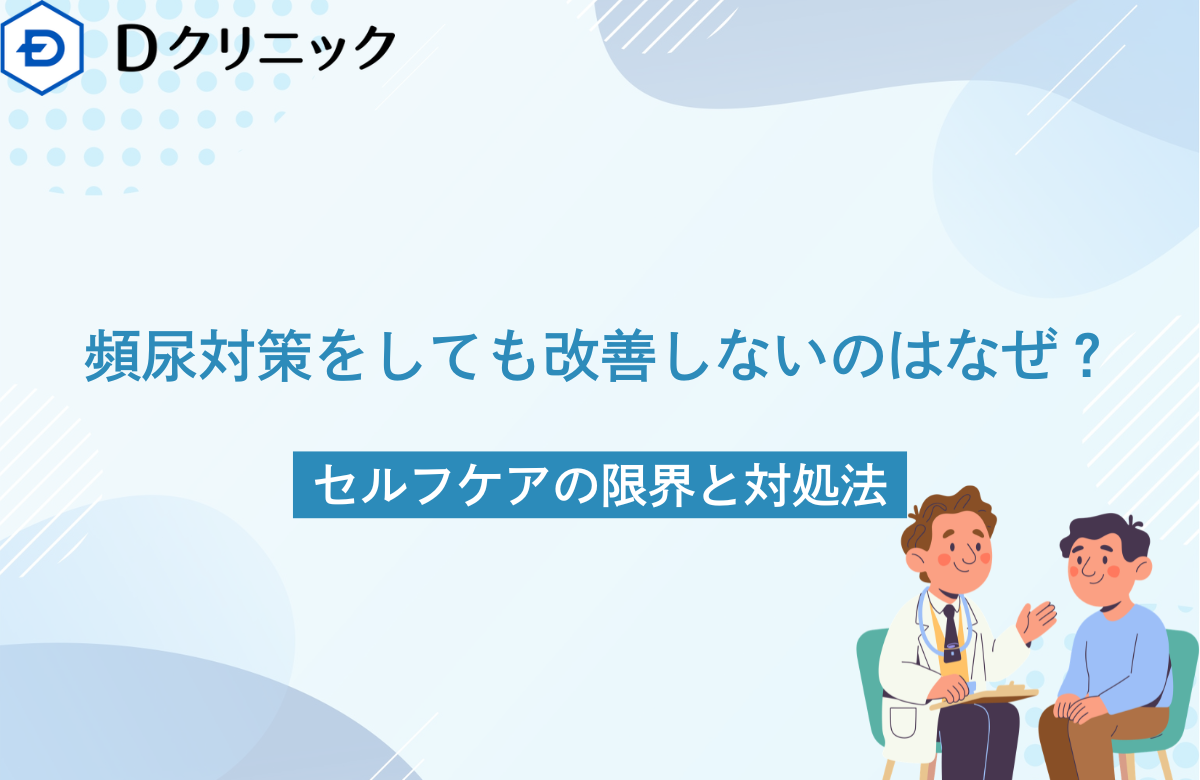 セルフケアで改善がみられない場合は、早漏治療薬ダポキセチンという選択肢があります。性行為前に1錠飲むだけで射精時間を約2〜3倍延長でき、Dクリニック東京で処方を受けられます。EDが背景にある場合はレノーヴァ治療も選択肢に入ります。一人で抱え込まず、まずはDクリニックにご相談ください。