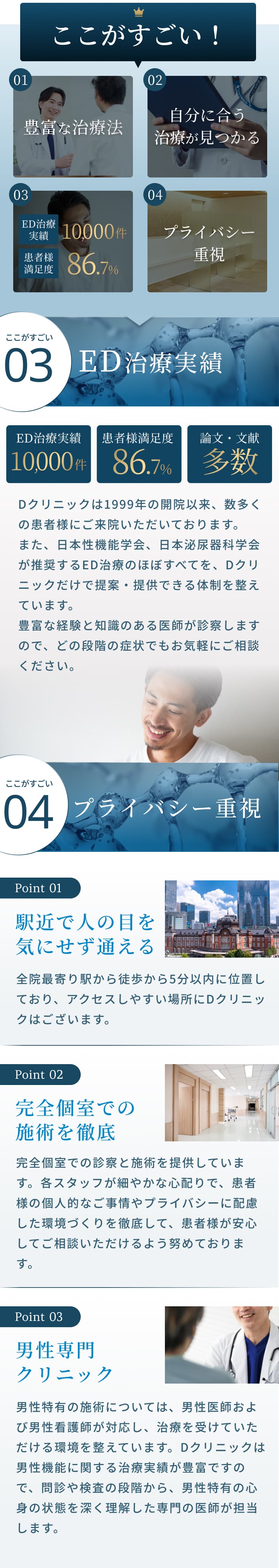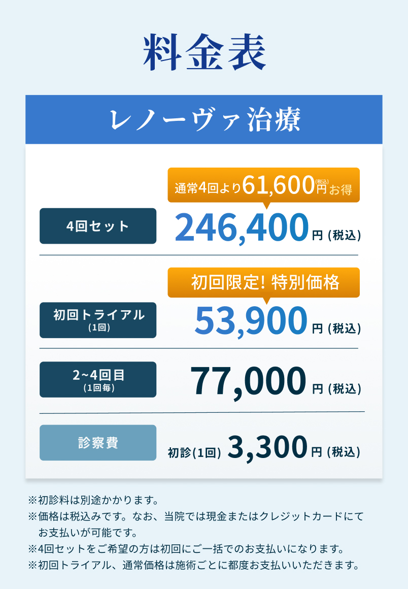 Dクリニックの料金体系は透明化を徹底しております。初診料や再診料の有無、検査費用など、薬代や施術費用以外にかかるすべての費用について、必ず事前に明確にご提示いたします。