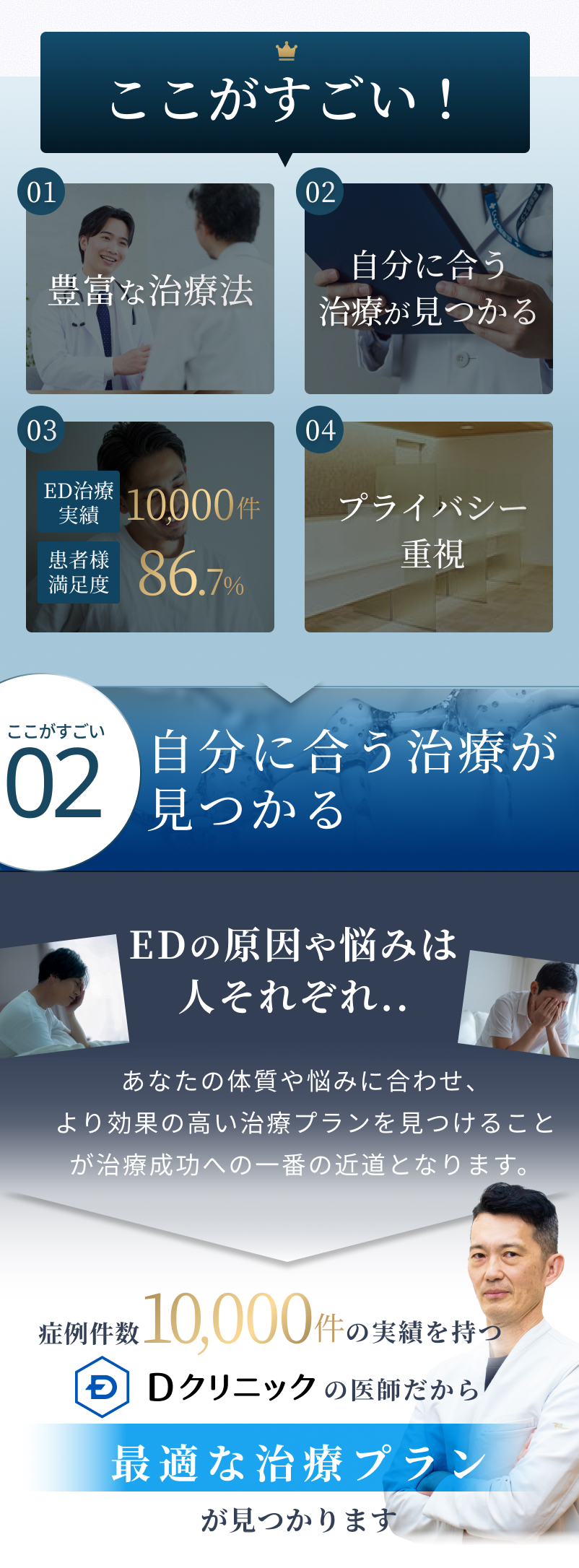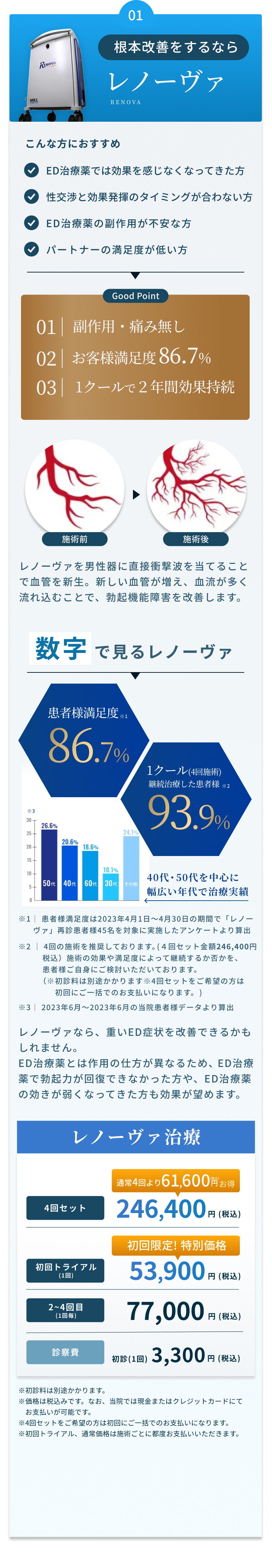 Dクリニックの料金体系は透明化を徹底しております。初診料や再診料の有無、検査費用など、薬代や施術費用以外にかかるすべての費用について、必ず事前に明確にご提示いたします。